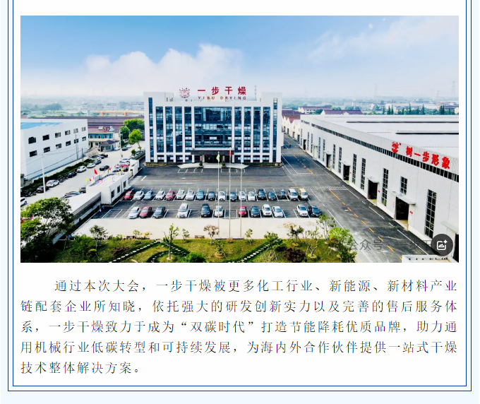 2024年11月25日-27日,为期三天的“第十二届中国(上海)国际流体机械展览会(CFME2024)”圆满落幕。主题为“创新引领绿色 发展共赢未来”,聚焦流体机械行业新需求、新市场、新动态,集中展示通用机械工业创新成果和发展成就。作为中国通用机械工业协会副理事长单位——常州一步干燥设备有限公司受邀参加大会,与众多行业技术大咖同台交流,共享发展机遇,实现合作共赢。