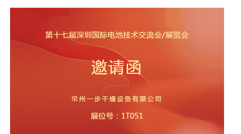 在电池技术领域蓬勃发展的当下,CIBF2025深圳电池展即将于2025年5月15日-17日在深圳国际博览中心盛大开幕。作为深耕电池材料干燥领域30年的国家专精特新小巨人企业,一步干燥长期致力于为电池材料干燥行业提供高效、优质的一站式解决方案。一步干燥诚挚邀请您参加第十七届深圳国际电池技术交流会,我们将在 1T051 展位恭候您的莅临,共襄盛会。