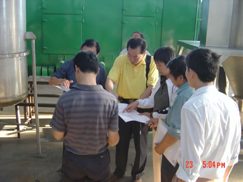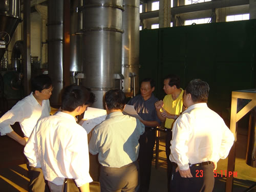 ^现场考察并与公司设计人员交流