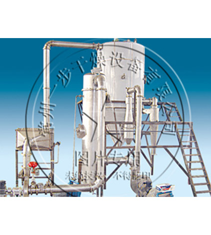 闭路循环喷雾干燥机是在密闭的环境下工作,干燥介质为惰性气体,一般为N2,适用于有机溶剂的物料干燥有毒气的物料或干燥过程中易发生氧化的物料的干燥;该系统采用惰性气体作为循环气体,对干燥的物料具有保护作用,循环气体经历载湿、去湿的过程,介质可重复使用;氮气经加热器加热后进入干燥塔,液体物料经螺杆泵输送至离心喷头处,液体被高速循环的雾化器雾化成液滴,在干燥塔内完成热质交换过程,被干燥后的粉状物料从塔底排出,被蒸发的有机溶剂气体在风机负压的压力下,把夹在气体中的粉尘经旋风分离器、喷淋塔除尘后饱和的有机溶剂气体经冷凝器冷凝成液体排出冷凝器,不凝性气体介质连续加热后作为干燥载体在系统内重新循环使用。而常规的普通的离心喷雾干燥是通过不断的送、排风达到排湿的目的,这也是防爆型闭式离心喷雾干燥设备与普通离心喷雾干燥设备的一个明显区别;干燥系统内干燥介质为N2,内部为正压操作,保持一定的正压值,如果内部压力下降,由压力变送器来自动控制N2进量,保证系统压力平衡。