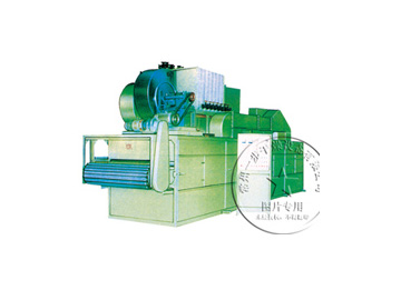DWP型喷射气流带式干燥类型,热风从狭缝或孔束流向下或向上同时喷向输送带上的物料,由于喷射气速高达15m/s以上,故对流传热的膜极薄,传热系数大,干燥速度快。该设备用于不透气类物料时,上面喷射气流仍返回上面,下面喷出的气流仍返回下面,再参与循环。对透气性物料气流束具有强穿透性及物料内部的扩散性。使用热源可以是蒸汽、电、热风炉及燃油烟通气等。