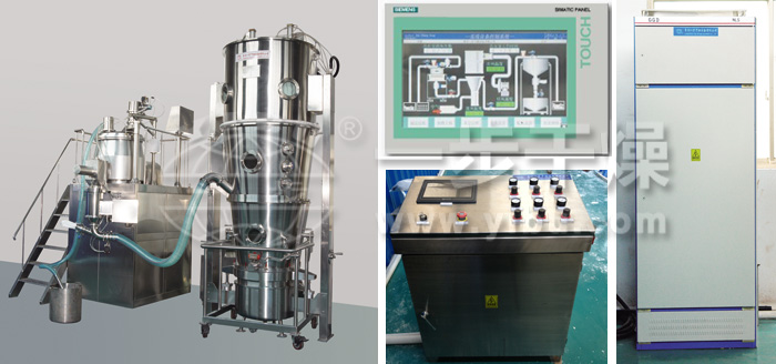 3、通过人机界面控制系统,可对湿法制粒、沸腾干燥制粒的工艺数据分别进行储存、采集与打印。通过一个控制柜控制多台设备的参数设定与监控,所有参数可以分级设定和修改并通过相应的级别设有多级密码。控制系统的主菜单上能够实时反映设备故障情况及报警记录,使生产的工艺过程完全自动化,并保证工艺的稳定性。