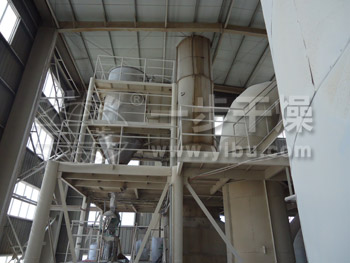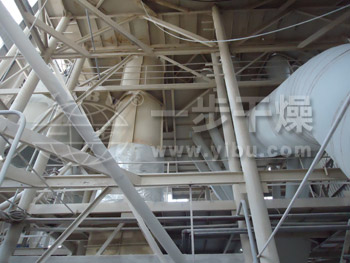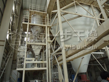 公司根据用户的实际需求进行工程设计,目前为南通光合设计的大豆蛋白喷雾塔直径10米,高度28米,水份蒸发量每小时达5吨,现已成功运行。大豆蛋白专用喷雾干燥机是利用雾化器使物料分散成雾状,与热空气充分接触完成瞬间干燥,形成粉状成品的干燥装置。空气先经过初效、中效过滤器,由加热器加热后进入干燥器顶部空气分配器,热空气呈螺旋状均匀地进入干燥室,与热空气并流接触在极短的时间内可干燥成成品。成品连续地由高效旋风分离器底部输出,废气由引风机排出。